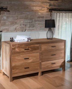 Questo mobile è realizzato in legno di teak naturale, un materiale pregiato noto per la sua bellezza e durata. La sua linea pulita e minimalista si adatta perfettamente a qualsiasi stile di arredamento, aggiungendo un tocco di calore e naturalezza alla tua casa.